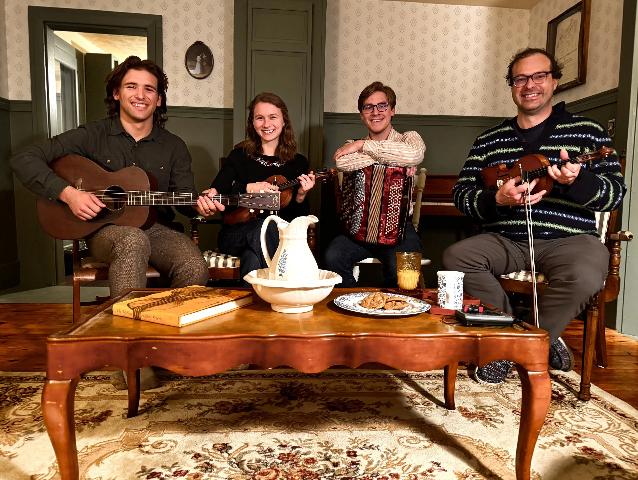 David Scrivner, Hawken and Emily Boldman, and Mason Herbold have been playing traditional Ozarks music together for four years, usually at dances, jams, and house parties. After meeting him at a fiddle camp where the two were students in 2018, Hawken and Emily approached David to begin a more focused mentorship in Ozarks old-time fiddling 2021. Mason joined the group in 2023 when he moved to the Ozarks from Central Missouri to attend college at Missouri State University.